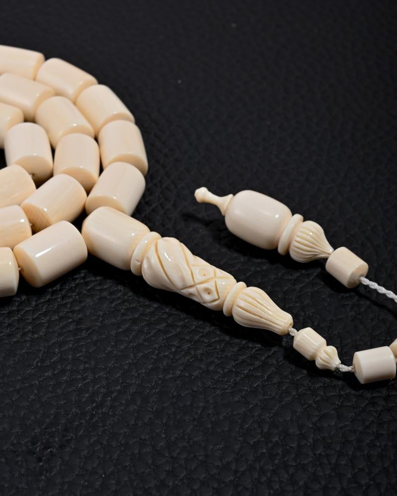 تتميز هذه السبحة النادرة من العاج بلونها الأبيض ذو الشكل الإسطواني الفاخر والمذهل. صُنعت بعناية وحرفية عالية من قبل أمهر صانعي السبح في العالم، لتبرز أناقة وجمال مالكها. تصميمها الراقي والرسمي يضفي عليها مظهراً أنيقاً ومميزاً يناسب جميع الأذواق. احصل على هذه السبحة الفريدة واجعلها جزءاً من إطلالتك الأنيقة والمميزة.