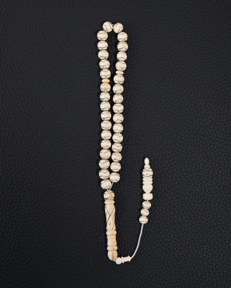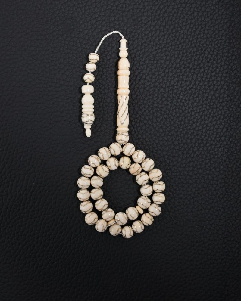 تتميز هذه السبحة النادرة من العاج بلونها الأبيض الفاخر ذو الشكل الدائري المذهل المطعم بالفضة. صُنعت بعناية وحرفية عالية من قبل أمهر صانعي السبح في العالم، لتبرز أناقة وجمال مالكها. تصميمها الراقي والرسمي يضفي عليها مظهراً أنيقاً ومميزاً يناسب جميع الأذواق. احصل على هذه السبحة الفريدة واجعلها جزءاً من إطلالتك الأنيقة والمميزة.