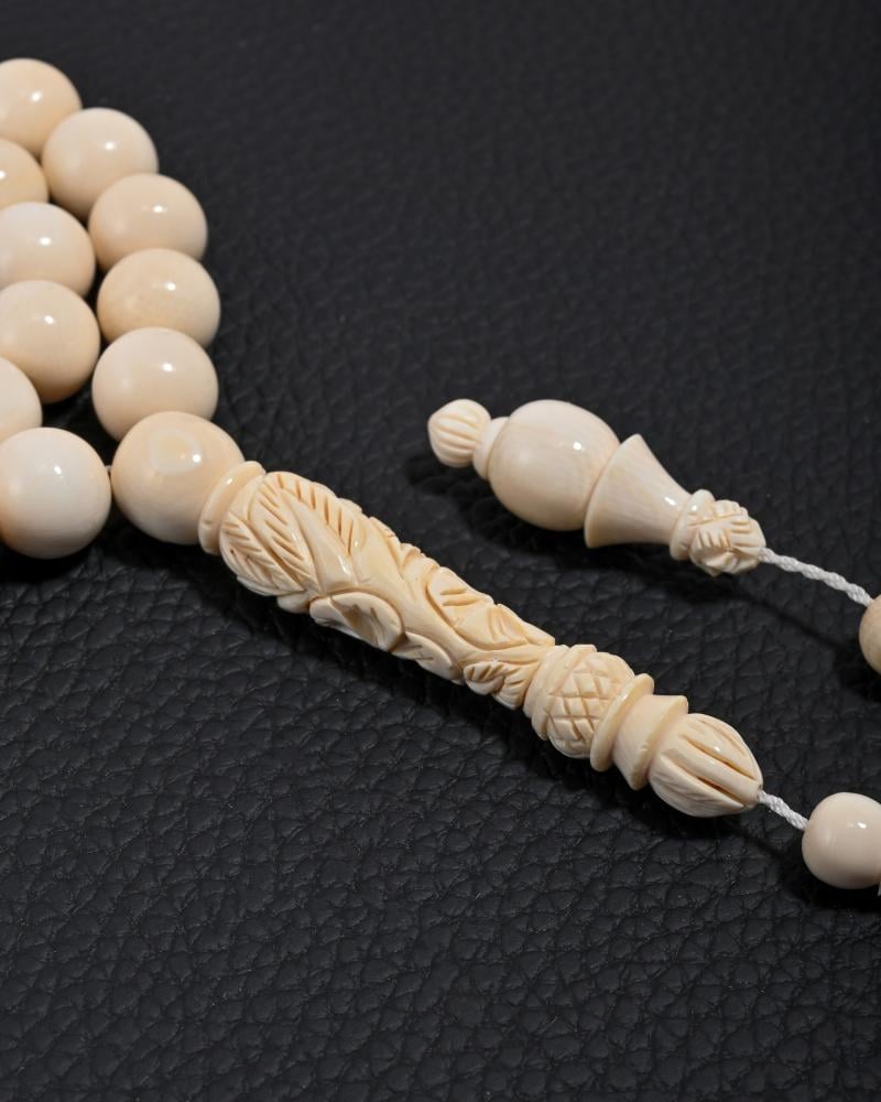 تتميز هذه السبحة النادرة من العاج بلونها الأبيض الفاخر ذو الشكل الذائري المذهل. صُنعت بعناية وحرفية عالية من قبل أمهر صانعي السبح في العالم، لتبرز أناقة وجمال مالكها. تصميمها الراقي والرسمي يضفي عليها مظهراً أنيقاً ومميزاً يناسب جميع الأذواق. احصل على هذه السبحة الفريدة واجعلها جزءاً من إطلالتك الأنيقة والمميزة.