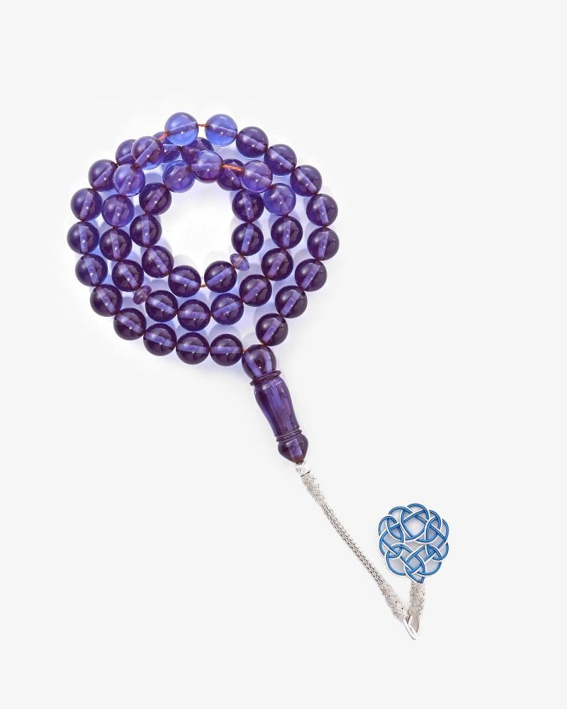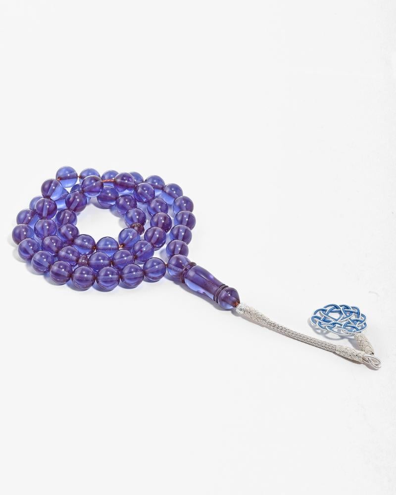سبحة فاتوران صب حديد ناعمة الملمس بلون أزرق شفاف ، مخروطة بإتقان على شكل دائري تمتاز بتنوع في الشكل واللون والمظهر وكركوشة فضة عيار 1000، صممت لإظهار اناقة مالكها وقوة حضوره واناقته وذوقه الرفيع، من أكثر انواع الفاتوران جمالا وأناقة ورسمية في لونه ومظهره لتناسب جميع الاذواق.