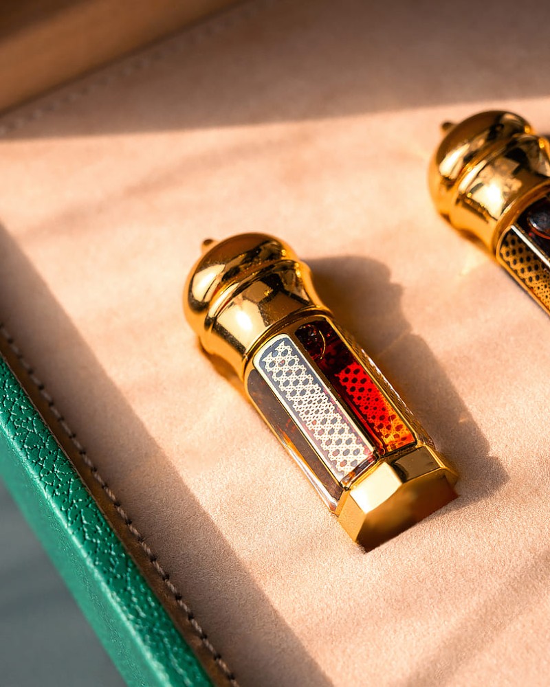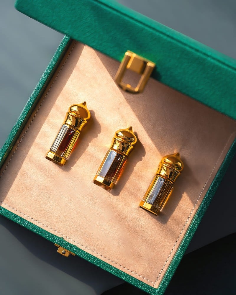 طقم مجموعة دهن عود احجماها ربع تولة ( دهن عود كومبودي - دهن عود براشين - دهن عود مخلوط سوبر 6 ) تمتاز برائحتها الجميلة الفاخرة والذي له ثبات وانتشار عالي. مناسب للاستخدام الشخصي والمناسبات. ويصنف كأحد افضل انواع العود وأكثرها طلباً.