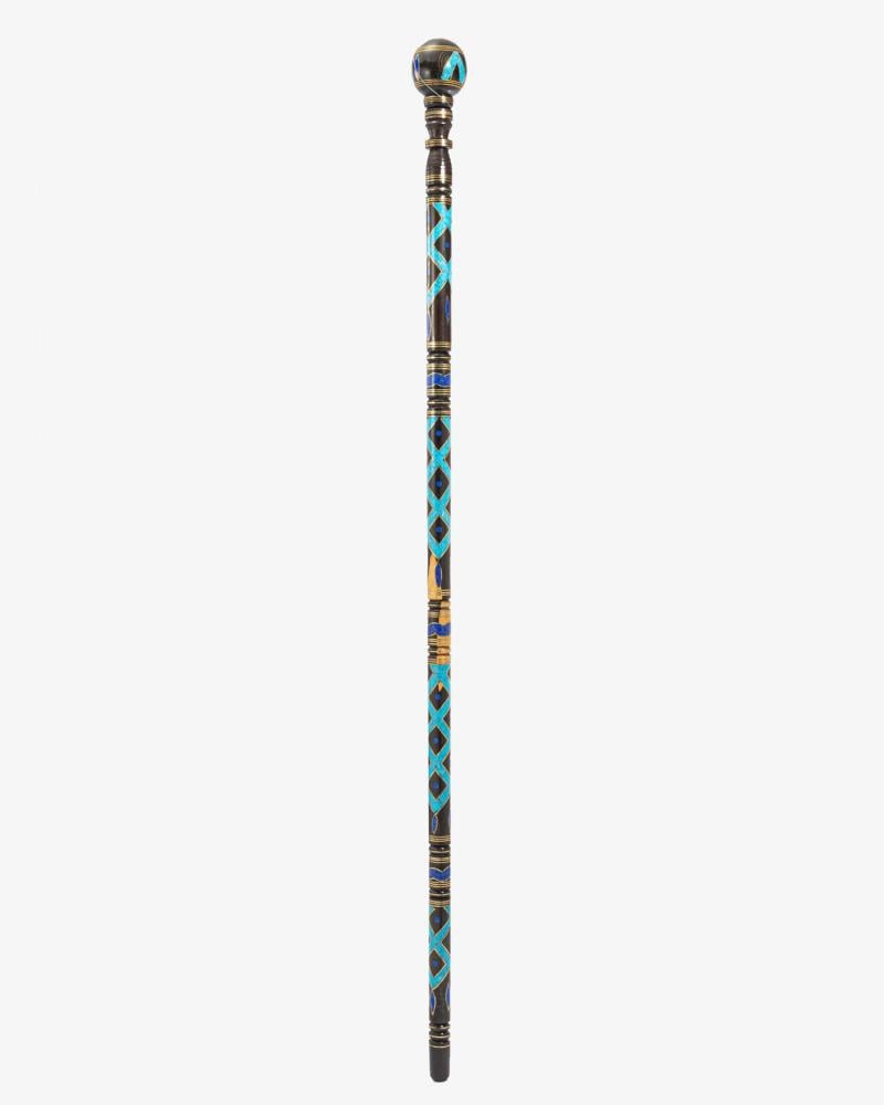 عصا عكاز من خشب ايبانوس طبيعي انيق, منقوش شبيه الفيروز ولازورد بطريقة احترافية ناعمة الملمس ,بمقبض دائري صناعة يدوية على ايدي امهر الحرفيين المتخصين في تصنيع عصا العكاز الاخشاب الطبيعية ,وتم صقلها بإحترافية متعددة الاستخدام سميكة وطولها 95 سم ,تصلح في المناسبات الاجتماعية لجميع الاذواق.