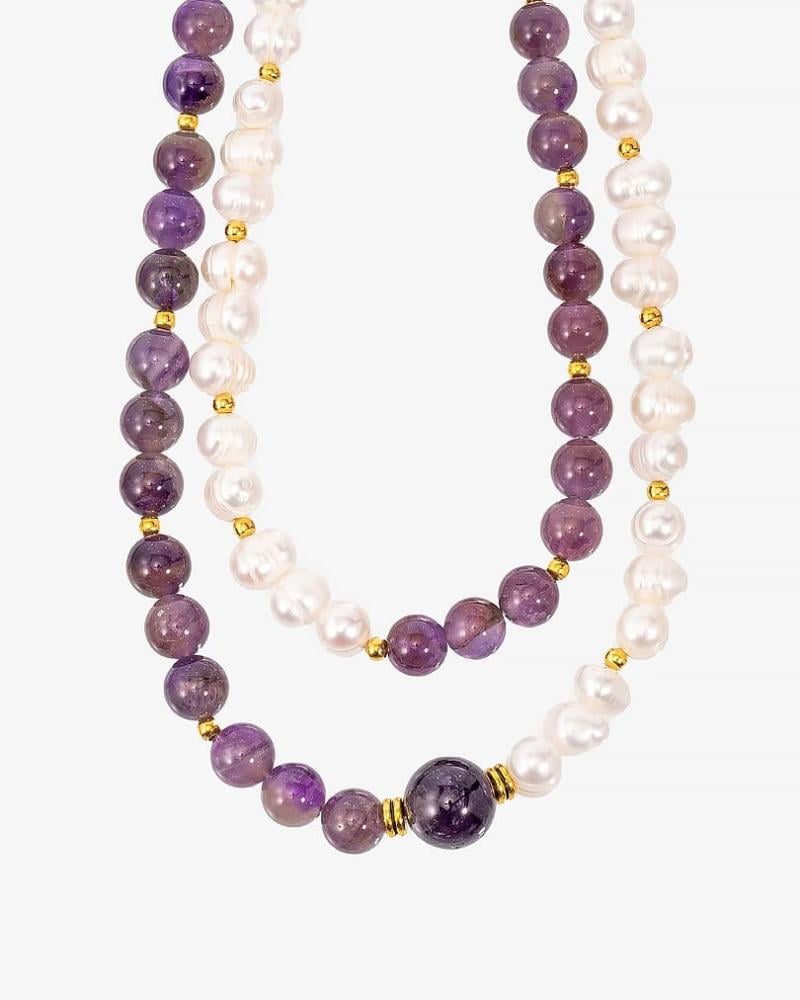 ✨ أحجار طبيعية: مزيج متناغم من اللؤلؤ الطبيعي وأحجار الجمشت الفاخرة يمنحك تألقًا لا مثيل له.