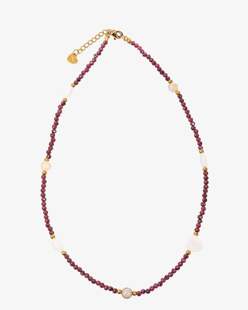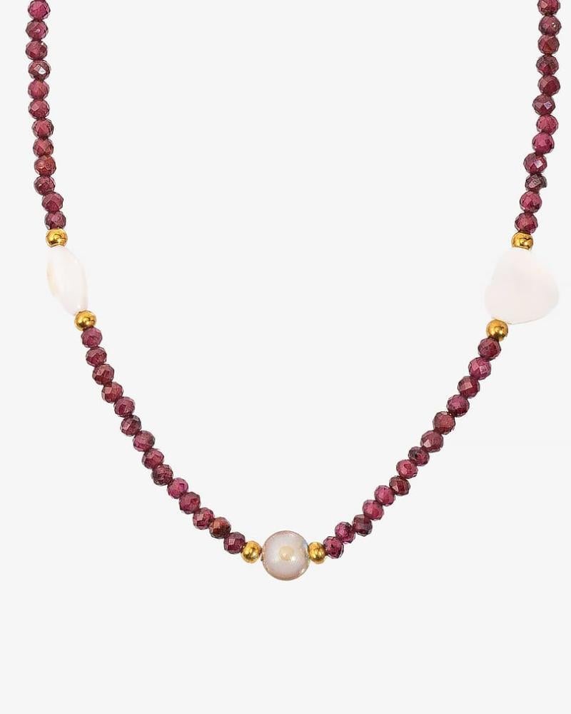 تألقي بإطلالة جذابة مع هذا العقد الراقي المصنوع من خرز أحمر متوهج، يرمز إلى القوة والشغف، تتوسطه حبة صدف طبيعية لإضفاء لمسة من الفخامة والرقي ✨🔥. تفاصيله الذهبية تمنحه لمسة ساحرة، ليكون الإكسسوار المثالي لكل من تعشق الأناقة.