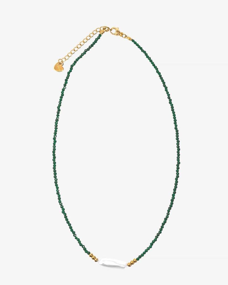 عقد نسائي أنيق بحبات خضراء مع الصدف الطبيعي
