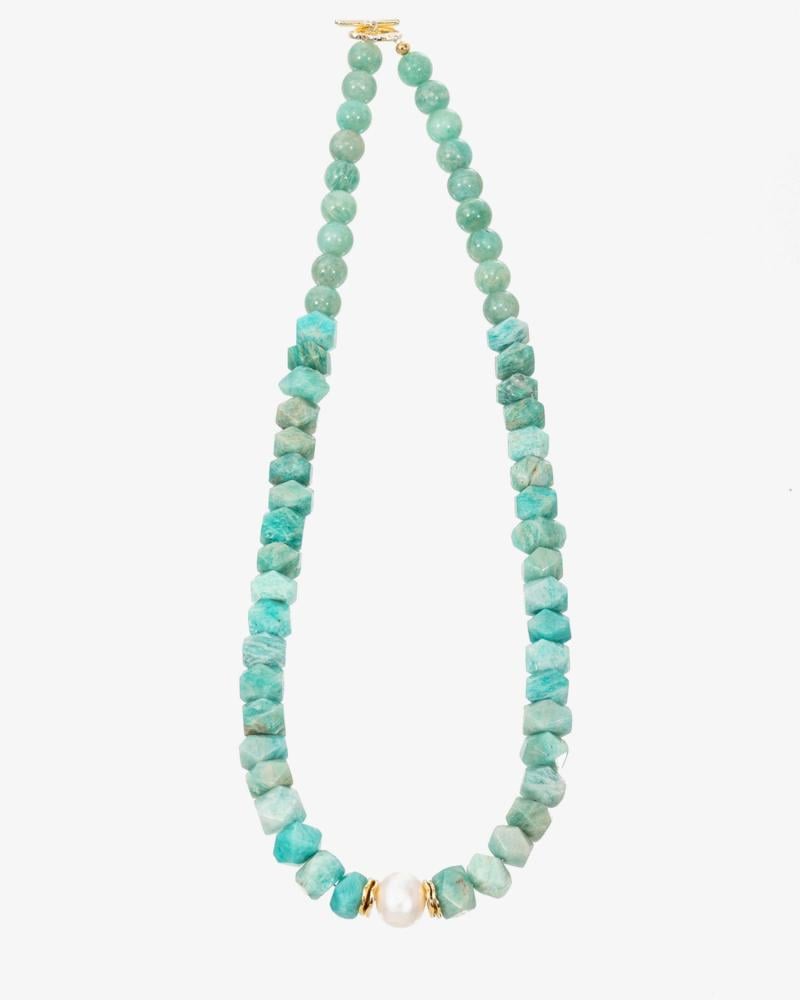أضف لمسة ساحرة إلى إطلالتك مع هذا العقد الفاخر المصنوع من حجر اكوامارين الطبيعي 💎، بتصميم يجمع بين العصرية والكلاسيكية. يتميز العقد بتدرجات ألوان مبهرة من الأزرق والأخضر، مع لمسة أنيقة من اللؤلؤ الأبيض في المنتصف، مما يمنحه طابعًا راقيًا وجذابًا.