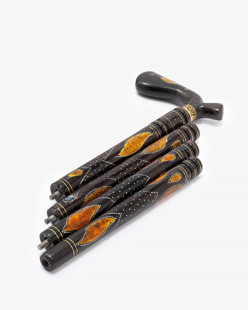 An elegant crutch made of natural ebony wood, decorated with amber and turquoise, inlaid with copper, with a soft-touch longitudinal handle, handmade by the most skilled craftsmen specialized in manufacturing crutches from natural wood, and professionally polished, multi-use, can be disassembled and assembled, 91 cm long, wide thickness, suitable for social occasions for all tastes