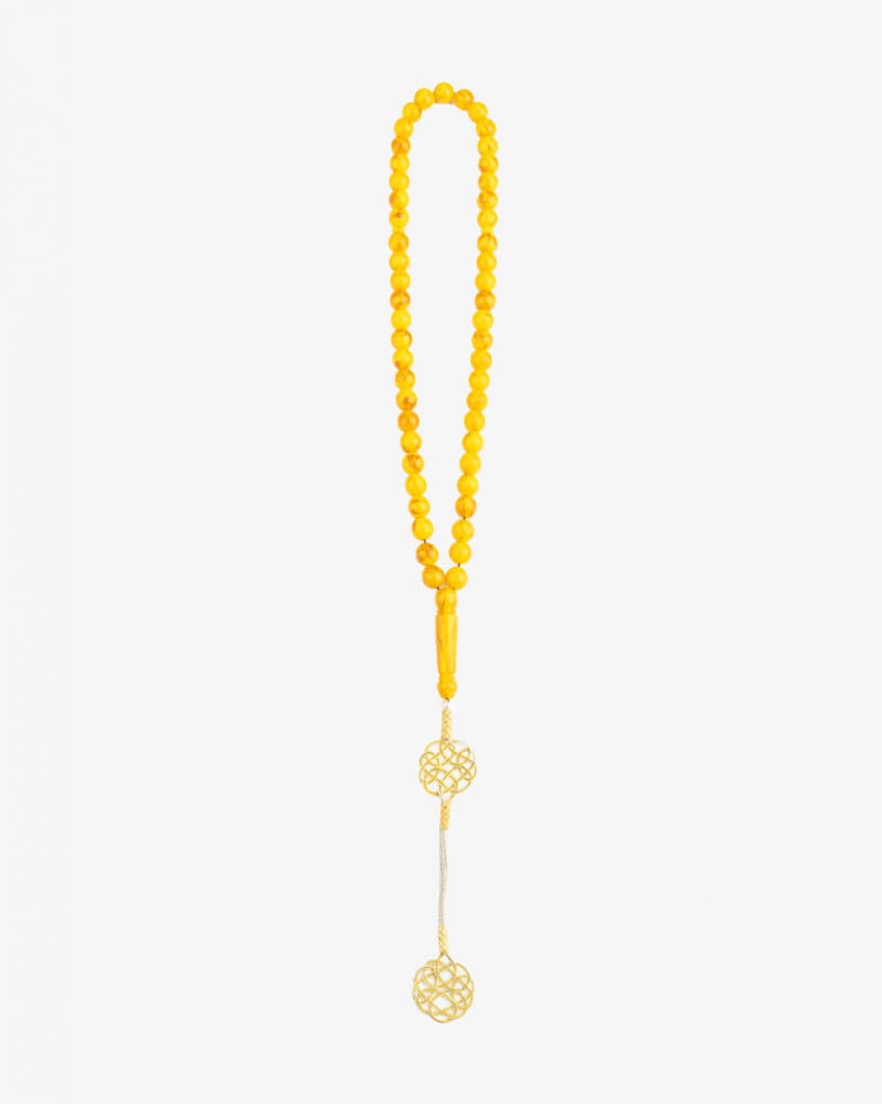 Amber-shaped bakelite rosary with distinctive veins and a luxurious 1000-karat silver tassel, expertly polished, round in shape, soft to the touch, in attractive colors, with 51 10 mm beads, designed to show the elegance of its owner, his strong presence, elegance and high taste. It is one of the most beautiful, elegant and formal types of bakelite rosaries in its color and appearance to suit all tastes.