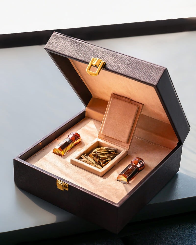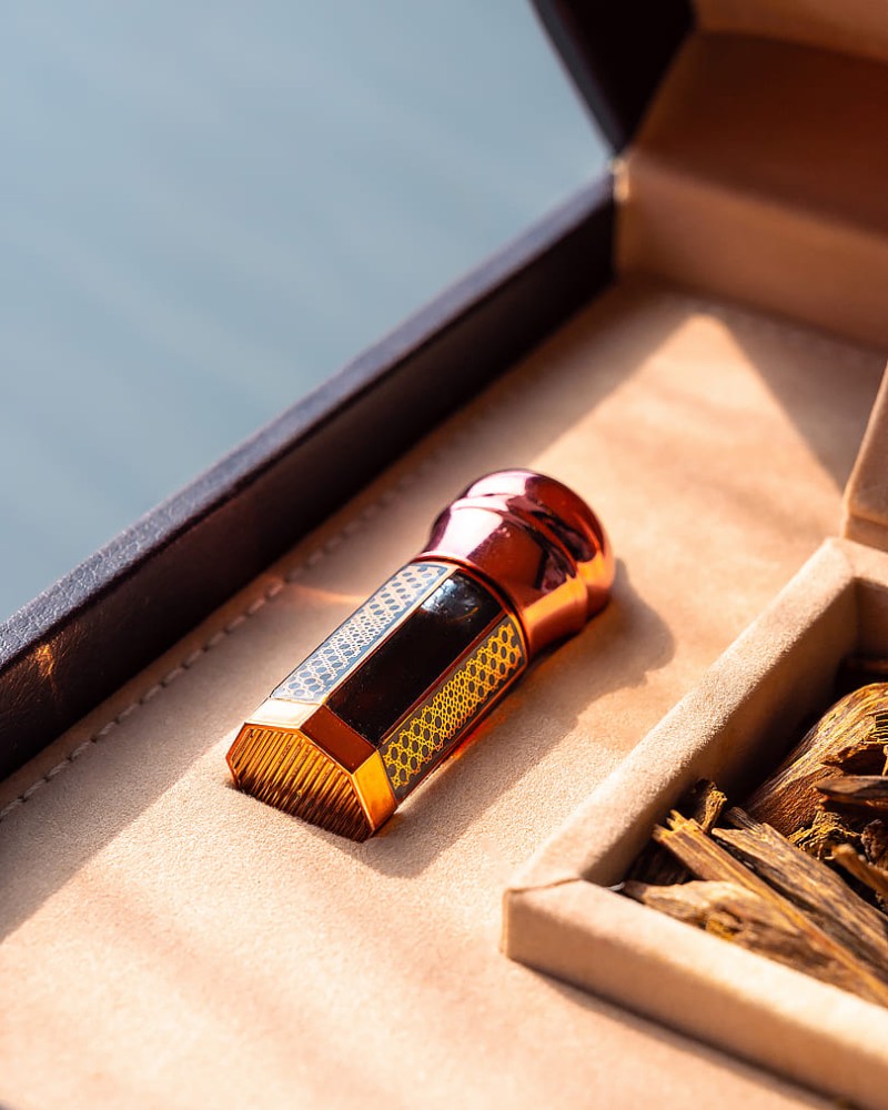 Indian Oud from the famous Assam forests, one tola size, and a set of oud oils, both sizes are a quarter tola (fragrant Indian Cambodian Oud oil - aged Cambodian Oud oil). It is one of the oldest types of natural oud wood and is known as the "King of Oud" due to the strength of the oud scent in its folds, its rapid spread in the place, and its high stability in clothing and gatherings. It is characterized by its broken combs and the high percentage of oud in its wood. Suitable for personal use and occasions.