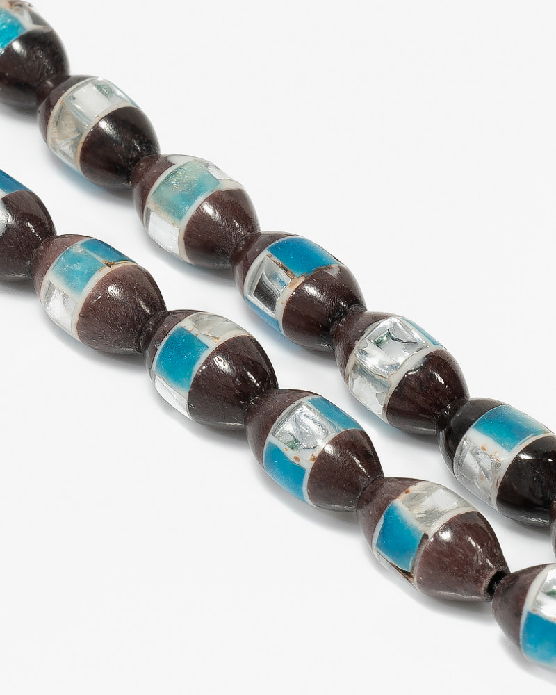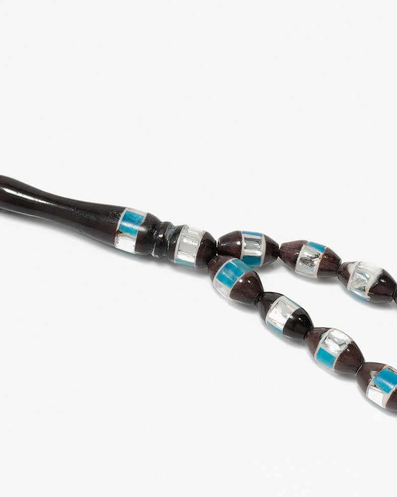 A rosary made of natural wood decorated with blue mirrors. With a smooth, uniform oval-shaped cut, designed to show off the elegance of its owner, it is distinguished by the fact that it retains the scent of perfume for a long time. One of the most famous rosaries distinguished by its wood that lasts a long time while maintaining the same quality. It has 33 beads, 6 mm, beautiful, elegant and formal in its color and appearance for a distinctive extension to suit all tastes.