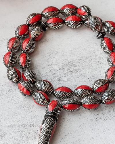 Plain camel bone and cocoa rosary, characterized by its beautiful details, hand-crafted in a wonderful way and skillfully rounded shape, soft to the touch, designed to show the elegance of its owner, his strong presence, elegance and high taste. The thread is characterized by being durable and cohesive, with 33 8 mm beads weighing 21 grams, to suit all tastes.