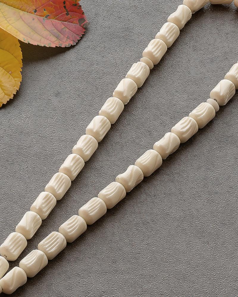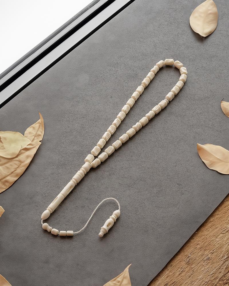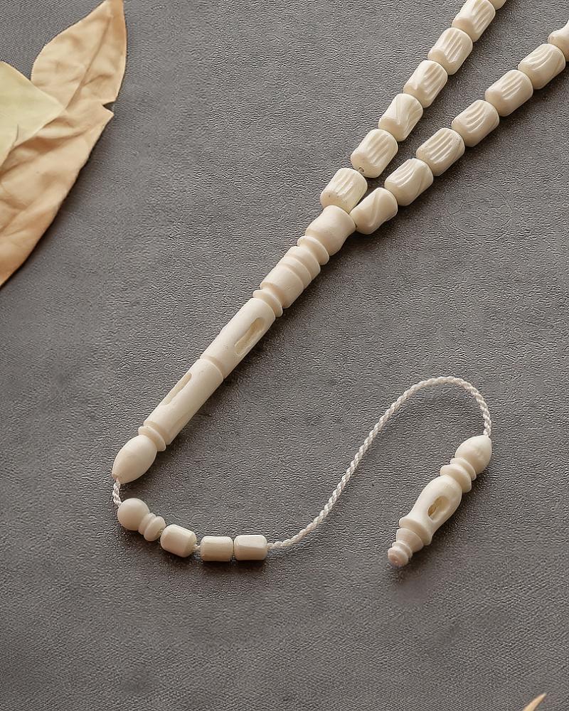 A carved camel bone rosary, characterized by its beautiful details, hand-carved in a wonderful way and mastery, cylindrical in shape, soft to the touch, designed to show the elegance of its owner, his strong presence, elegance and high taste. The thread is characterized by being durable and cohesive, with 33 6 mm beads, to suit all tastes.