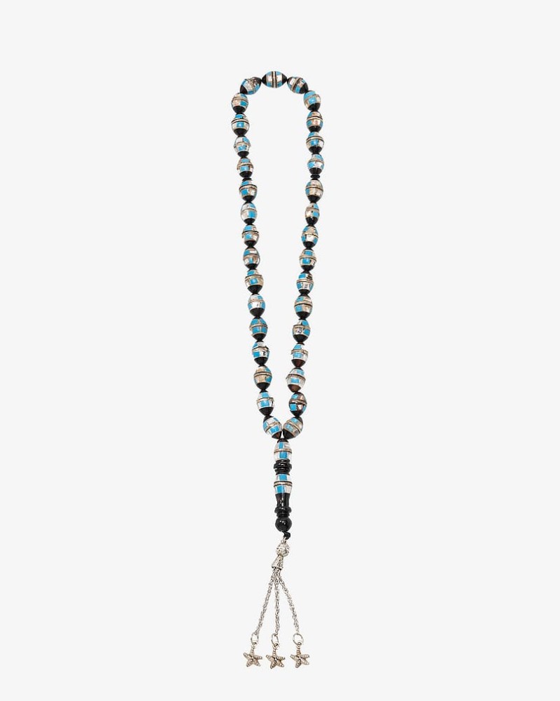 A rosary made of natural cocoa wood engraved with blue mirrors and elegant metal. With a smooth, uniform, peaked oval cut, designed to show off the elegance of its owner, it is distinguished by the fact that it retains the scent of perfume for a long time. One of the most famous rosaries distinguished by its wood that lasts a long time while maintaining the same quality, beautiful, elegant and formal in its color and appearance for a distinctive extension to suit all tastes.