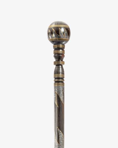 A luxurious crutch made of natural Ebanus wood, decorated with engraved metal, polished in a professional manner, soft to the touch, with a longitudinal handle, handmade by the most skilled craftsmen specialized in manufacturing crutches from natural wood, and polished professionally for multiple uses, suitable for social occasions for all tastes.
