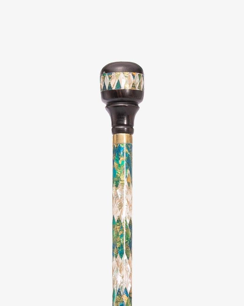 A crutch made of luxurious natural Ebanus wood, professionally engraved with natural mother-of-pearl, with a round handle, handmade by the most skilled craftsmen specialized in manufacturing crutches made of artificial wood. It has been professionally polished, multi-use, light in weight, 96 cm long, suitable for social occasions for all tastes.