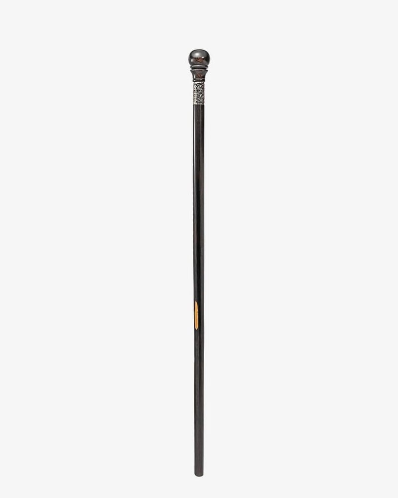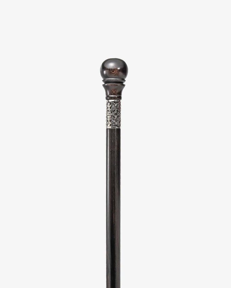 A luxurious crutch made of natural Ebanus wood, decorated with engraved metal, polished in a professional manner, soft to the touch, with a circular handle, handmade by the most skilled craftsmen specialized in manufacturing crutches from natural wood, and polished professionally for multiple uses, suitable for social occasions for all tastes.