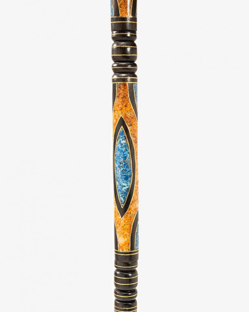 A luxurious crutch made of natural ebony wood, decorated with lapis lazuli and amber stones, engraved with copper, with a soft-touch round handle, handmade by the most skilled craftsmen specialized in manufacturing crutches from natural wood, and professionally polished, multi-use, detachable and reassembled, 94 cm long, lightweight, suitable for social occasions for all tastes