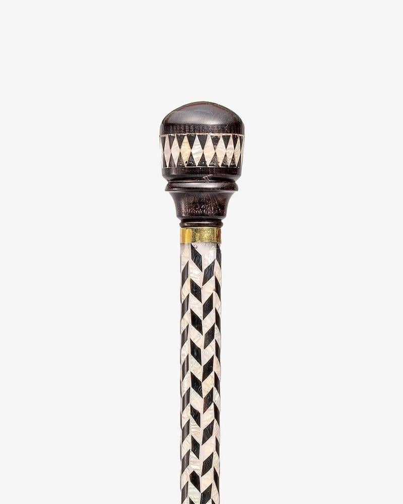 A crutch made of luxurious Ebanus wood, inlaid with artificial mother-of-pearl in a professional manner, soft to the touch, with a round handle, handmade by the most skilled craftsmen specialized in manufacturing crutches from natural wood, and professionally polished, multi-use, light weight, 94 cm long, suitable for social occasions for all tastes.