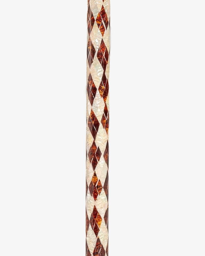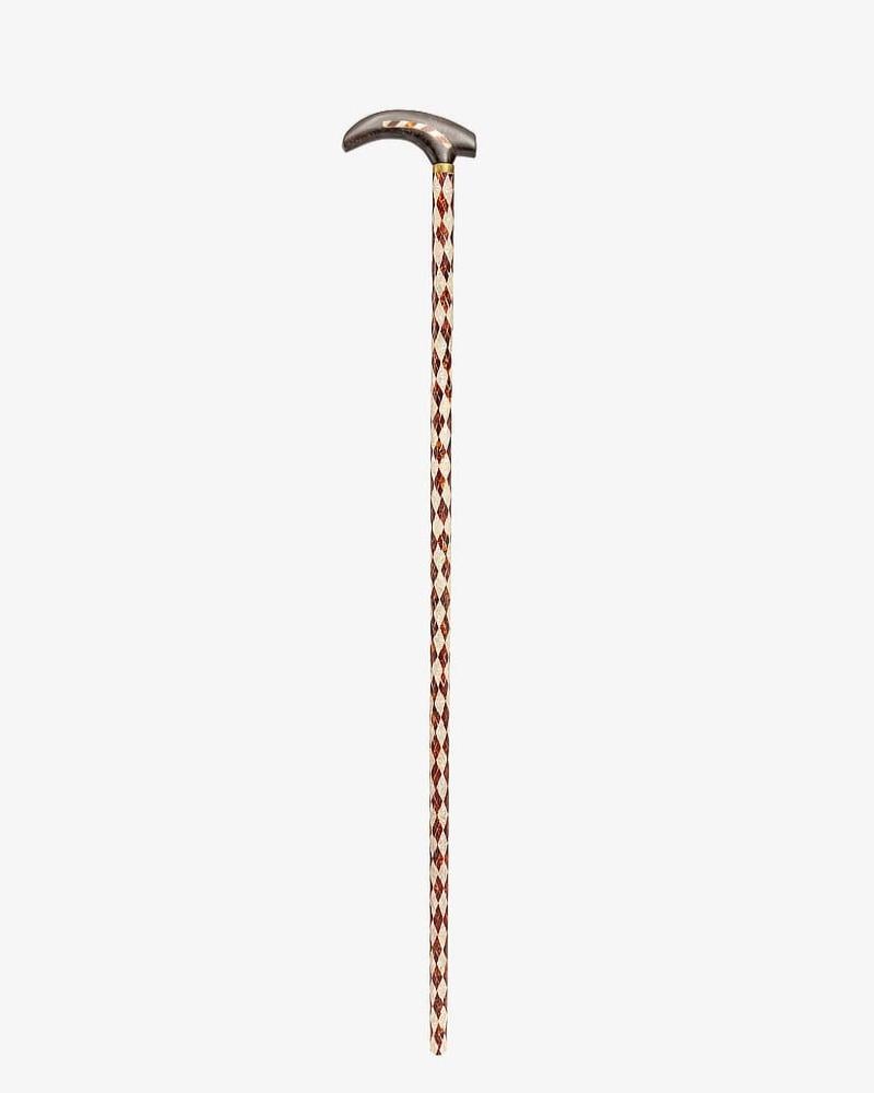 A crutch made of elegant natural Ebanus wood, professionally inlaid with soft-touch artificial mother-of-pearl, with a longitudinal handle, handmade by the most skilled craftsmen specialized in manufacturing crutches made of natural wood. It has been professionally polished for multiple uses, 94 cm long, suitable for social occasions for all tastes.
