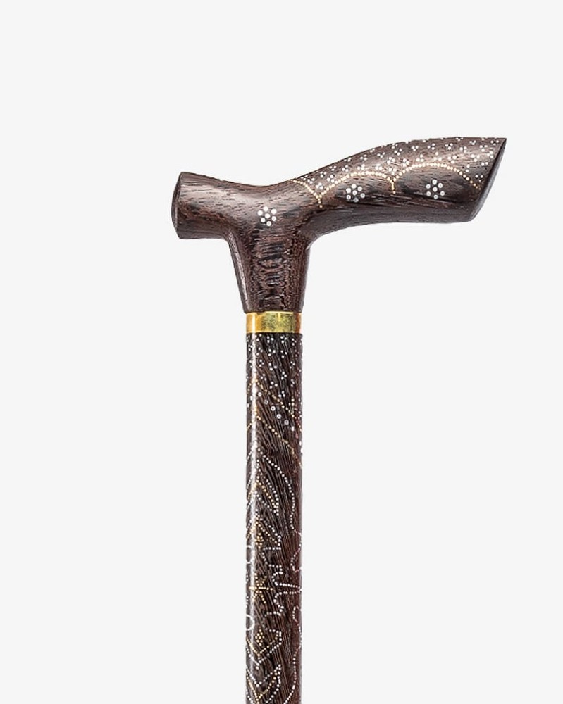 A crutch made of luxurious natural ebony wood, decorated with metal and copper, smooth to the touch, expertly polished with a longitudinal handle, handmade by the most skilled craftsmen specialized in manufacturing crutches from natural wood, and professionally polished, multi-use, 95 cm long and thick, suitable for social occasions for all tastes