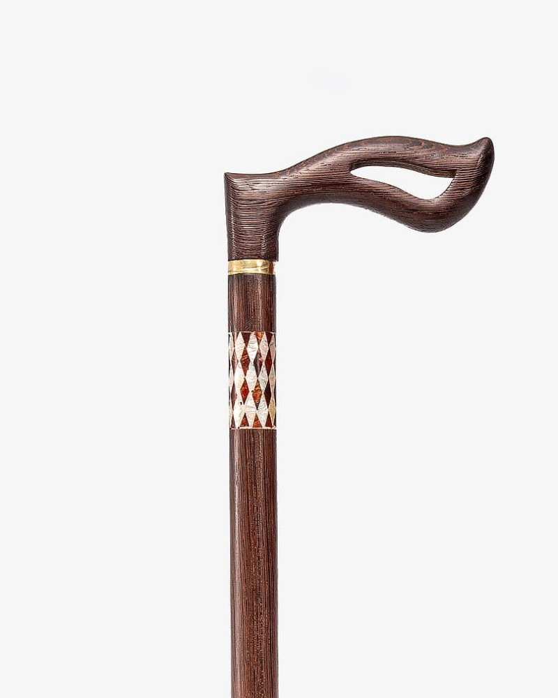 A crutch made of natural Ebanus wood decorated with luxurious mother-of-pearl, professionally engraved with a soft texture, with a longitudinal handle, handmade by the most skilled craftsmen specialized in manufacturing crutches from natural wood, and professionally polished for multiple uses, suitable for social occasions for all tastes.