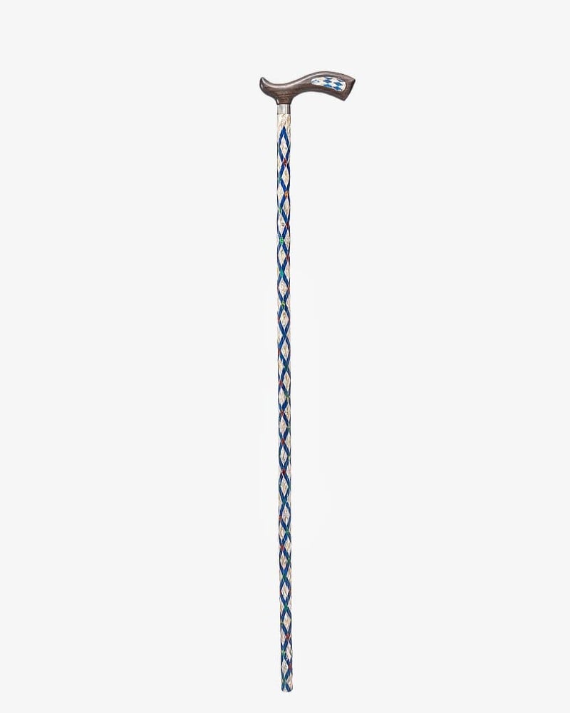 A crutch made of luxurious Ebanus wood, professionally engraved with natural mother-of-pearl, with a longitudinal handle, handmade by the most skilled craftsmen specialized in manufacturing crutches made of natural wood. It has been professionally polished for multiple uses, suitable for social occasions for all tastes.