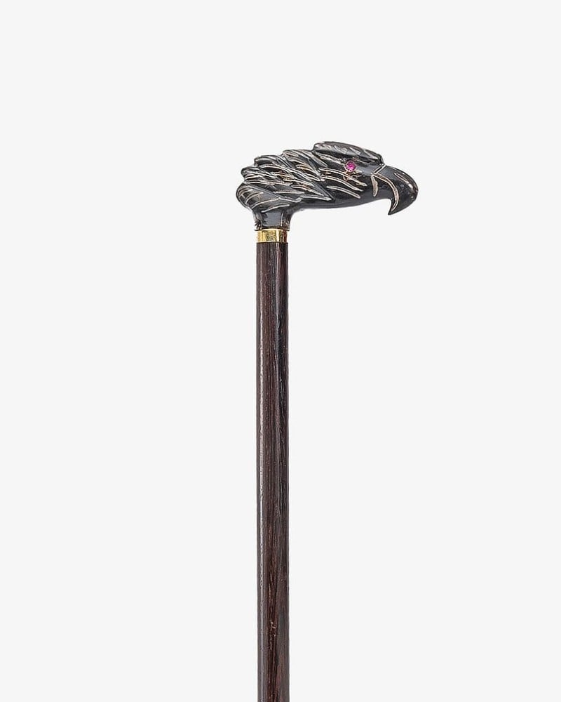 Natural ebony wood crutch, with a handle carved in the shape of an eagle's head made of soft-touch buffalo horn, handmade by the most skilled craftsmen specialized in manufacturing crutches from natural wood, and professionally polished, multi-use, light weight, suitable for social occasions for all tastes