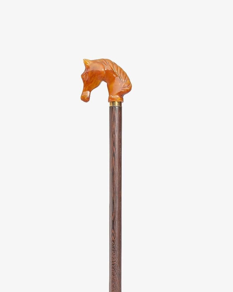 Natural ebony wood crutch, with a camel-colored bakelite handle carved in the shape of a horse's head, soft to the touch, handmade by the most skilled craftsmen specialized in manufacturing crutches from natural wood, and professionally polished, multi-use, lightweight, 95 cm long, suitable for social occasions for all tastes