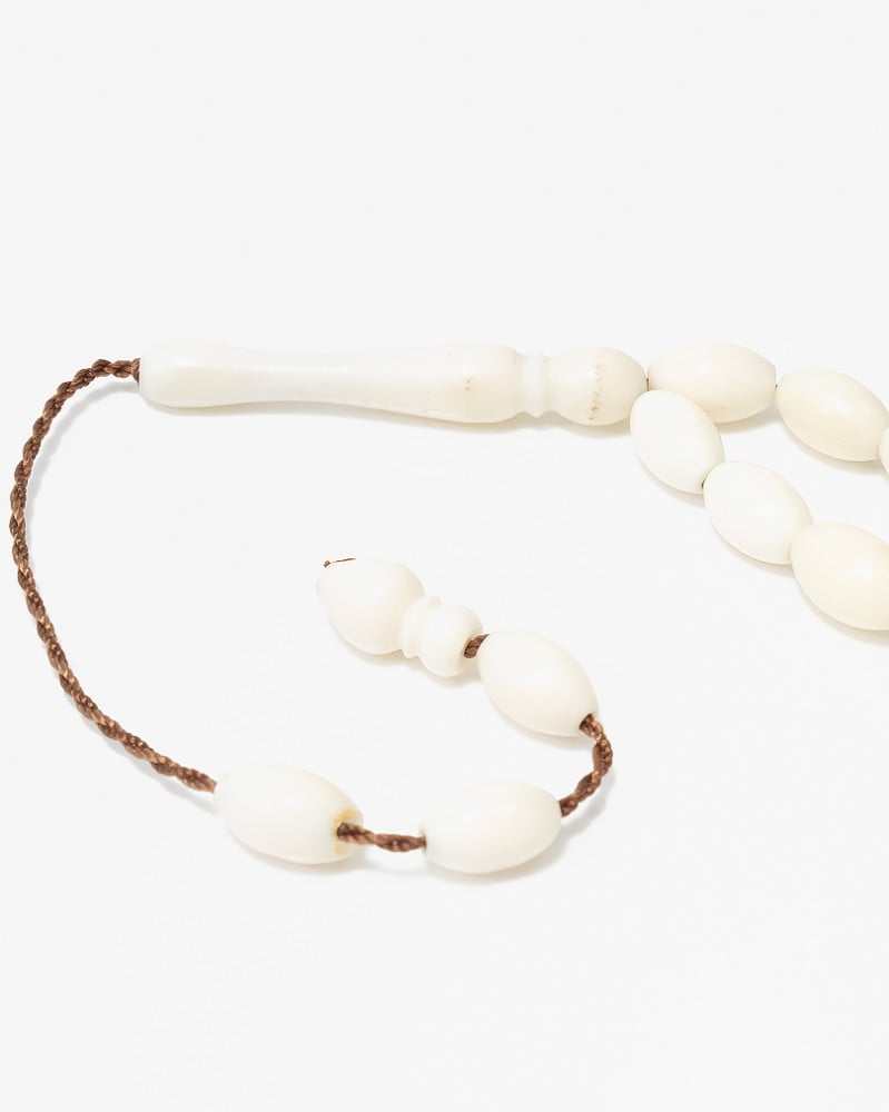 An elegant camel bone rosary, distinguished by its beautiful details, hand-crafted and exquisitely carved, olive-shaped and soft to the touch, designed to show the elegance of its owner, his strong presence, elegance and high taste. The thread is distinguished by being durable and cohesive, with 33 6 mm beads, to suit all tastes.