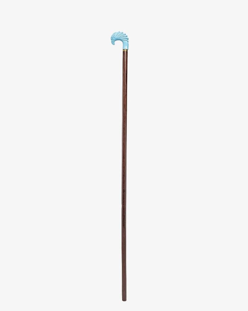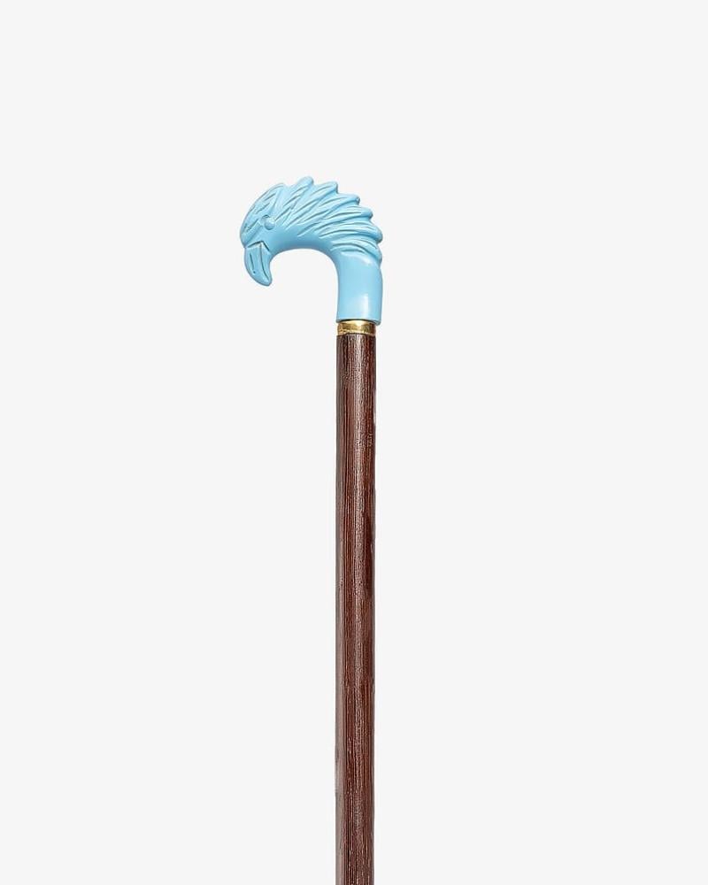 A crutch made of natural Venge wood, with a sky blue Bakelite handle decorated with an eagle's head, soft to the touch, handmade by the most skilled craftsmen specialized in manufacturing crutches made of natural wood, and professionally polished, multi-use, lightweight, 95 cm long, suitable for social occasions for all tastes.