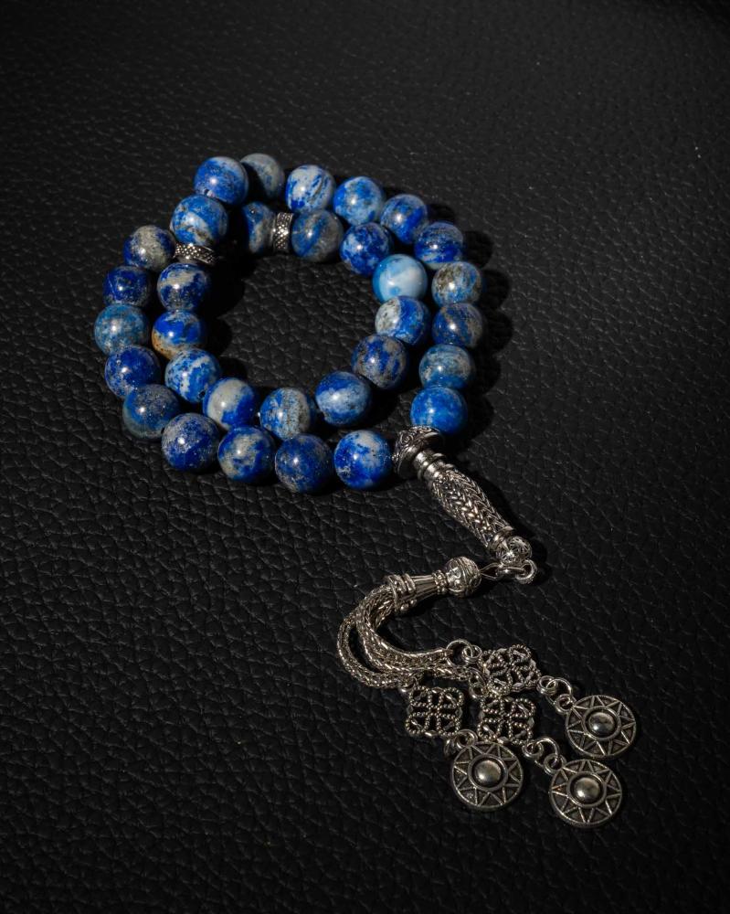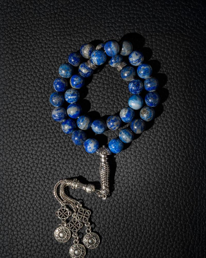 Luxurious rosary made of natural lapis lazuli stone, a rosary specially designed by Emerwood with a soft texture and attractive colors, designed to show the elegance of its owner, his strong presence and his refined taste.