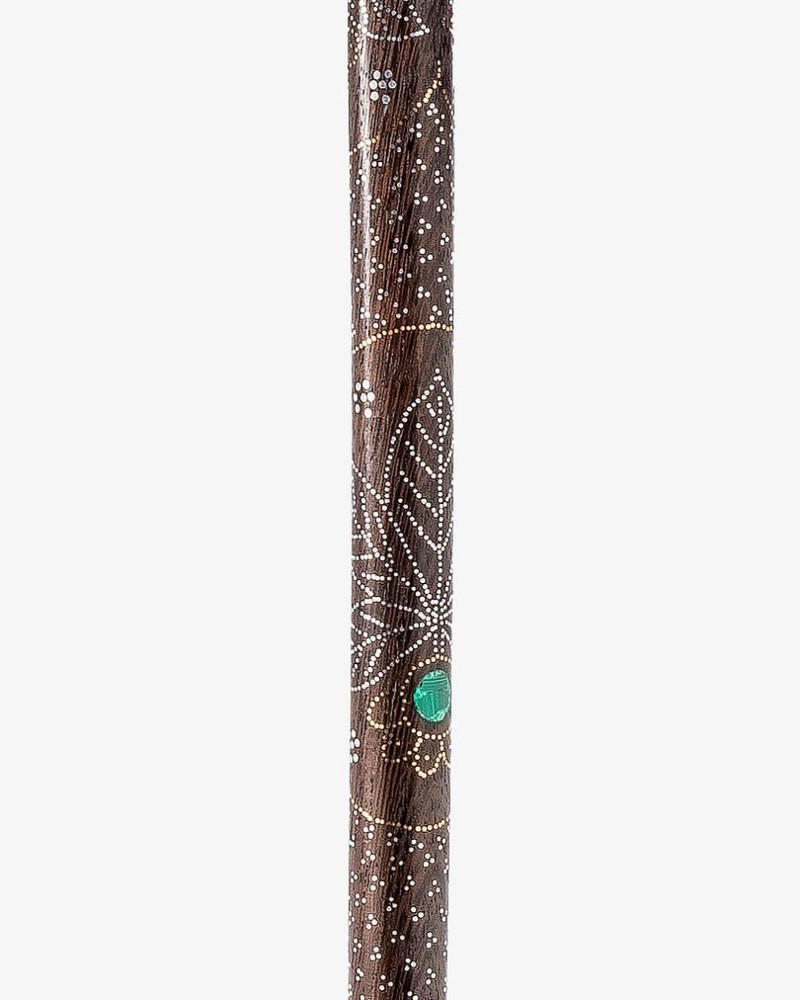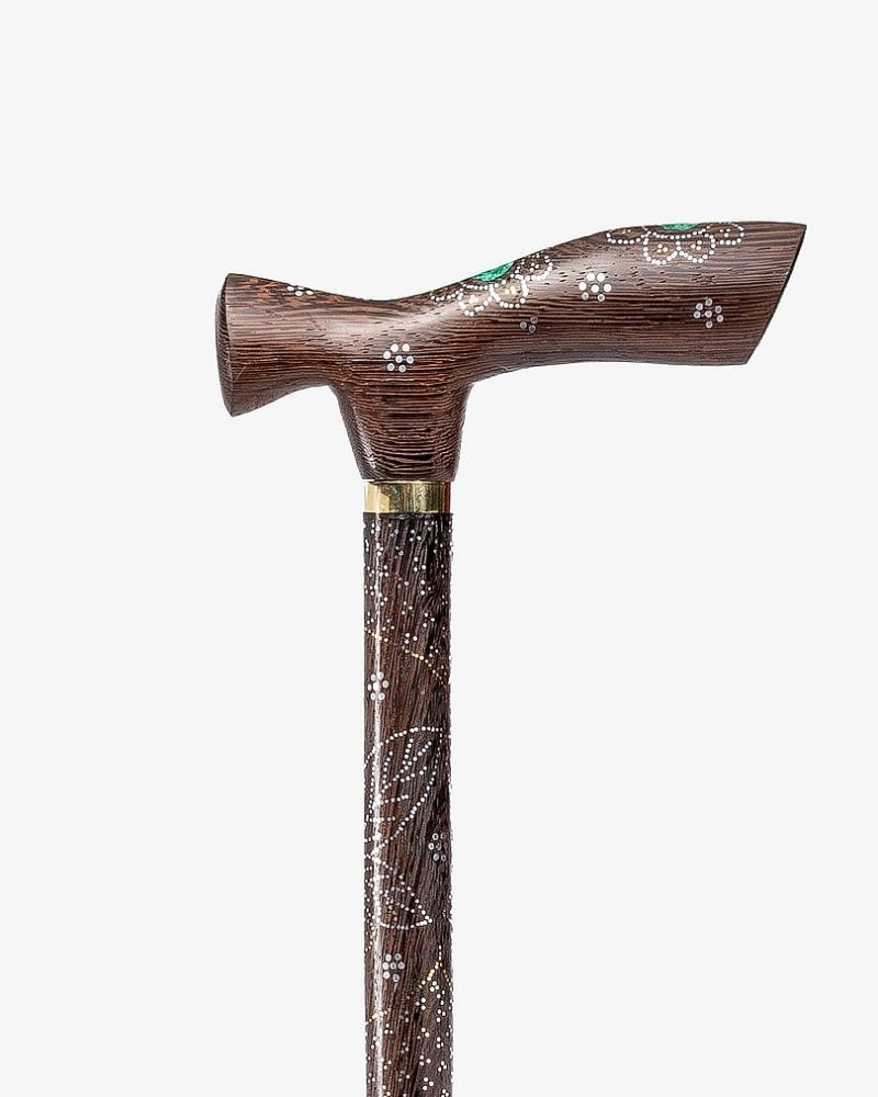 A crutch made of natural ebony wood, inlaid with a malachite-like stone and engraved with soft copper, with a longitudinal handle, handmade by the most skilled craftsmen specialized in manufacturing crutches from natural wood, and professionally polished, for multiple uses, 96 cm long and thick, suitable for social occasions for all tastes