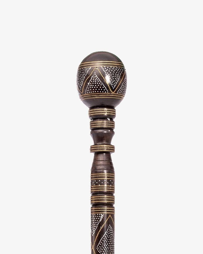 A luxurious crutch stick made of natural Ebanus wood, professionally engraved with copper and metal, soft to the touch, with a round handle, handmade by the most skilled craftsmen specialized in manufacturing crutches from natural wood, and professionally polished, multi-use, thick, 97 cm long, suitable for social occasions for all tastes.