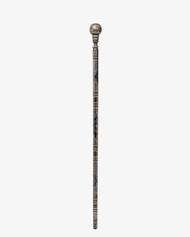A luxurious crutch stick made of natural Ebanus wood, professionally engraved with copper and metal, soft to the touch, with a round handle, handmade by the most skilled craftsmen specialized in manufacturing crutches from natural wood, and professionally polished, multi-use, thick, suitable for social occasions for all tastes