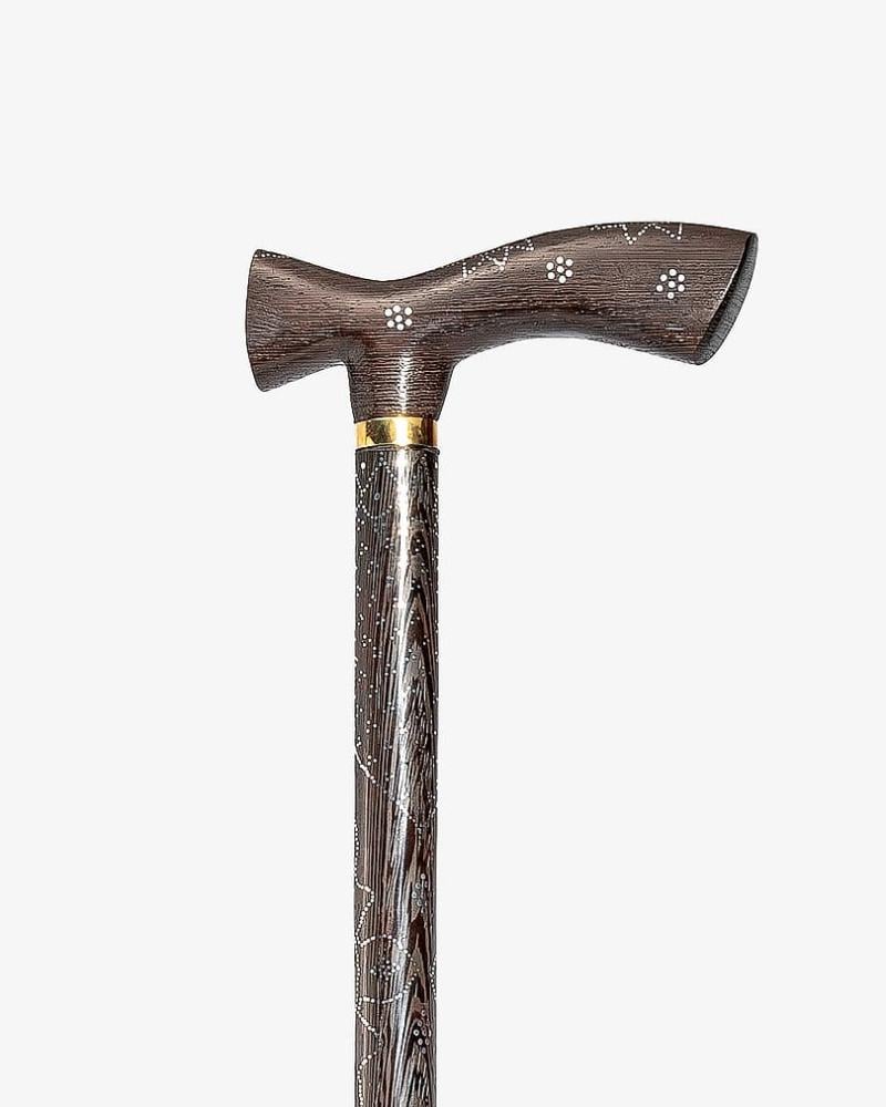 A crutch made of natural ebony wood, inlaid with a malachite-like stone and engraved with soft copper, with a longitudinal handle, handmade by the most skilled craftsmen specialized in manufacturing crutches from natural wood, and professionally polished, for multiple uses, 94 cm long and thick, suitable for social occasions for all tastes