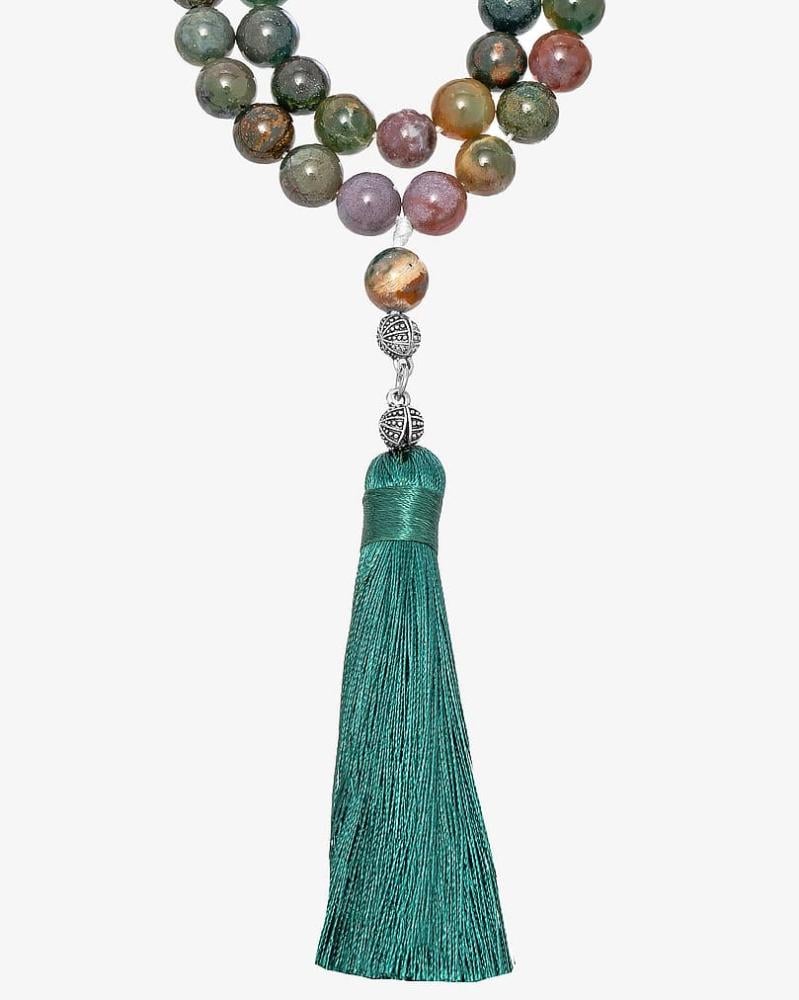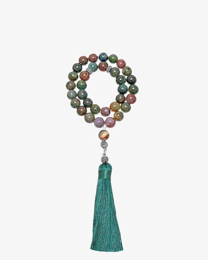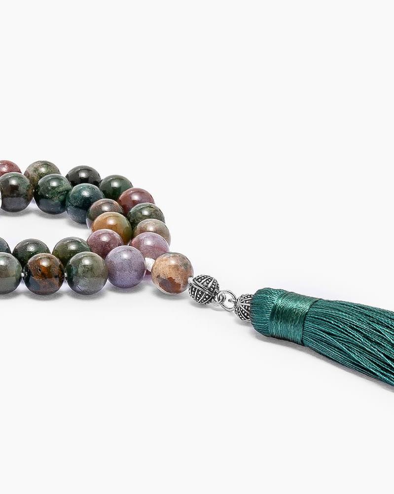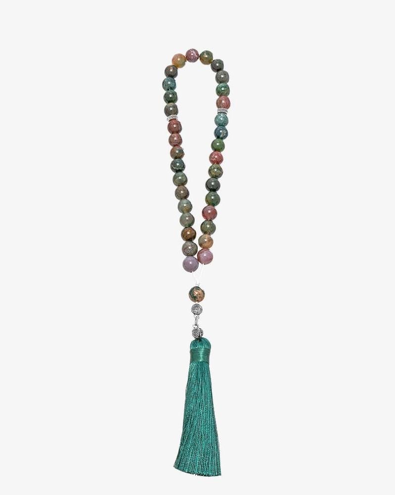 A rosary with a natural Indian agate stone, in a luxurious circular design, featuring a finely polished finish, giving it a smooth and elegant look. It comes in attractive colors that make it a unique piece, designed to highlight the elegance and strength of its owner, and perfectly reflect his refined taste.
