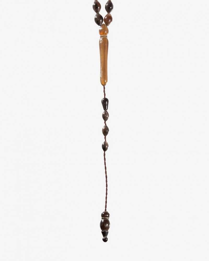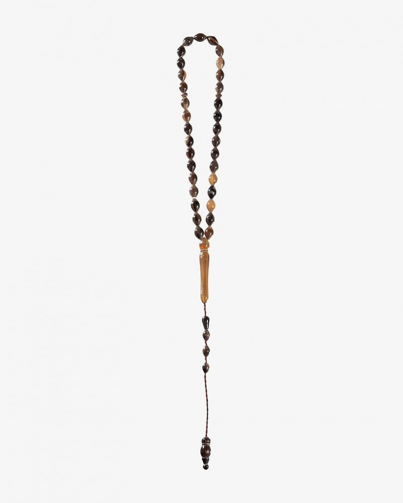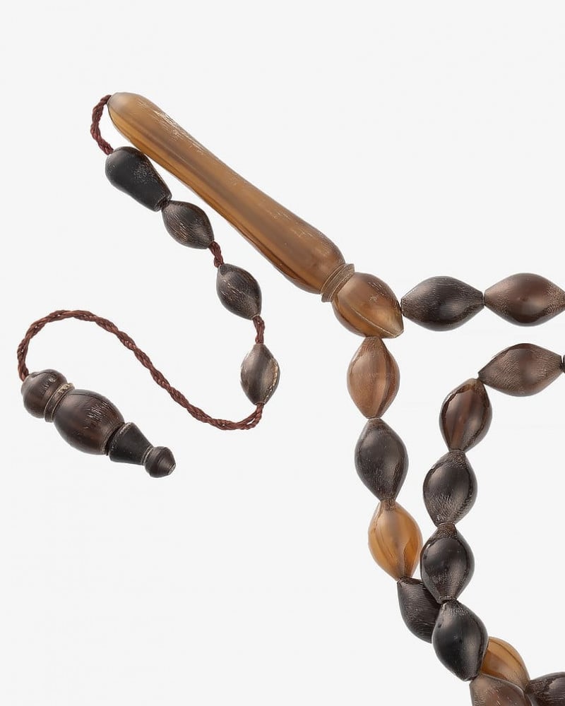 Luxurious buffalo horn rosary, characterized by its beautiful details, exquisitely carved and expertly crafted, olive-shaped and soft to the touch, designed to show the elegance of its owner, his strong presence, elegance and high taste. The thread is characterized by being durable and cohesive, with 33 7 mm beads, to suit all tastes.