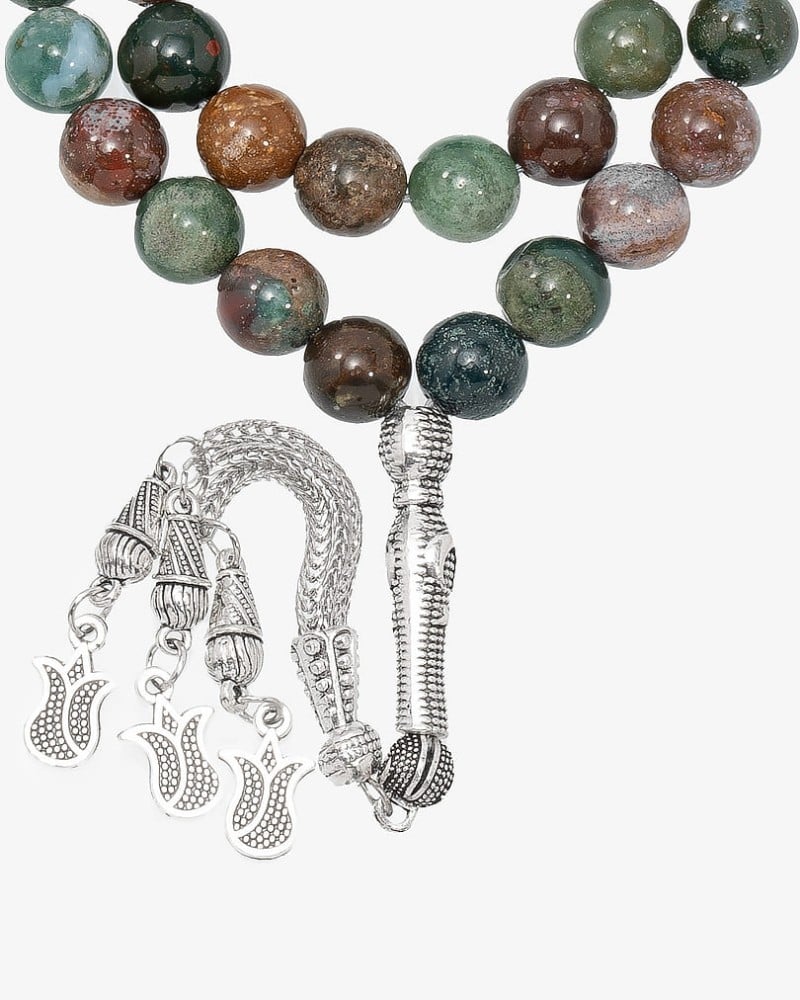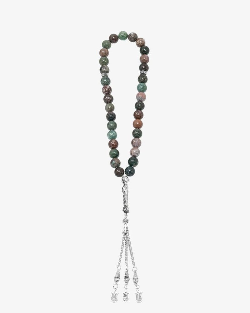 Natural Indian agate stone rosary, the stones are expertly polished, round in shape, smooth in texture, and in attractive colors. Designed to show the elegance of its owner, his strong presence, elegance, and high taste. It is one of the most beautiful, elegant, and formal types of agate stone rosaries in its color and appearance. It is ideal to suit all tastes and ages.