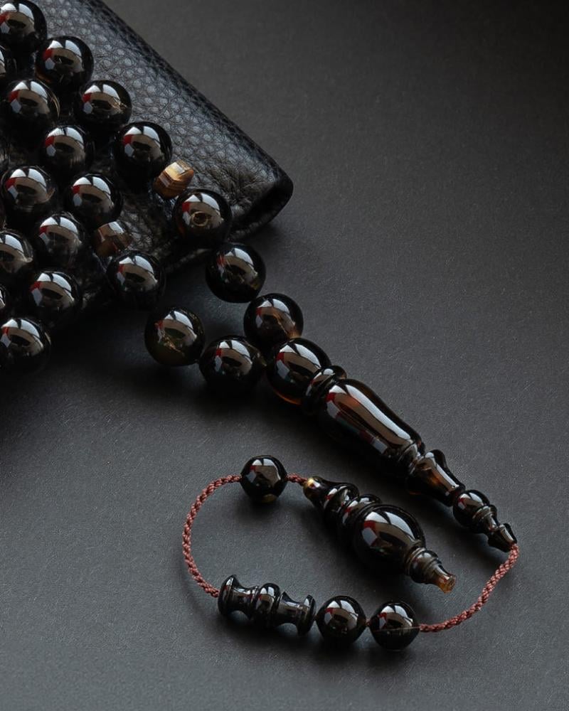 A luxurious and rare rosary made from the back of a turtle (turtle shell), to add a touch of beauty and luxury. Handcrafted. It is characterized by its smooth, uniform circular cut, with its dazzling color and attractive texture, making it a unique and distinctive piece of art that adds a touch of elegance and beauty to anyone who wears it.