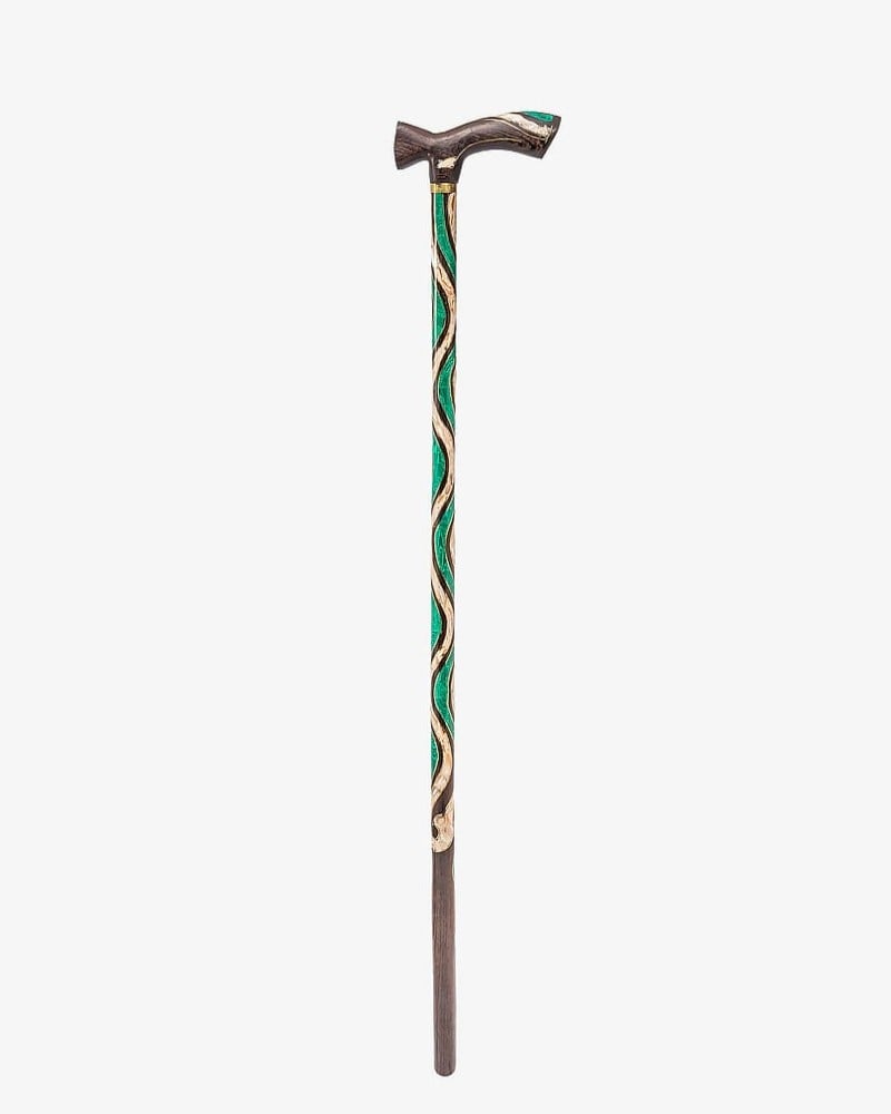 A crutch cane made of luxurious natural ebony wood, inlaid with malachite-like and soft-touch mother-of-pearl, expertly polished with a longitudinal handle, handmade by the most skilled craftsmen specialized in manufacturing crutches from natural wood, and professionally polished for multiple uses, 97 cm long and thick, suitable for social occasions for all tastes