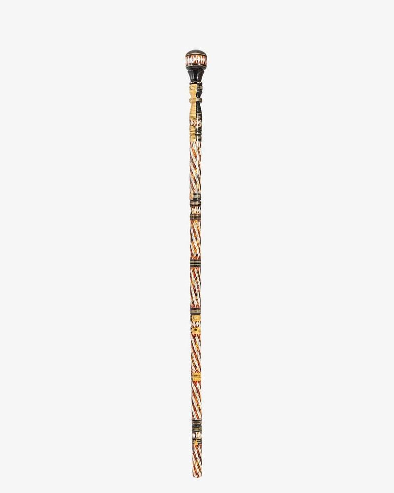 An elegant natural ebony wood crutch, professionally inlaid with natural mother-of-pearl, with a round handle, handmade by the most skilled craftsmen specialized in manufacturing natural wood crutches. It has been professionally polished, multi-use, thick and 96 cm long, suitable for social occasions for all tastes.