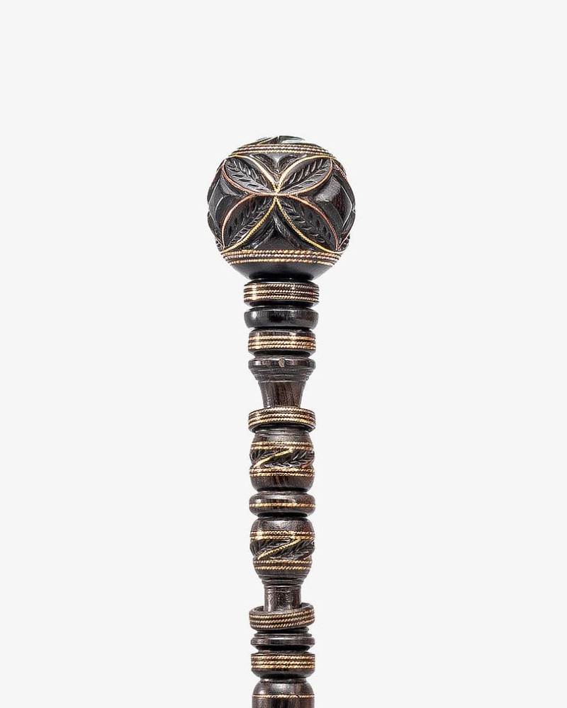 A crutch cane made of luxurious natural Ebanus wood, hand-carved from metal and copper in a professional manner, soft to the touch, with a round handle, handmade by the most skilled craftsmen specialized in manufacturing crutches from natural wood, and professionally polished, thick, multi-use, suitable for social occasions for all tastes.