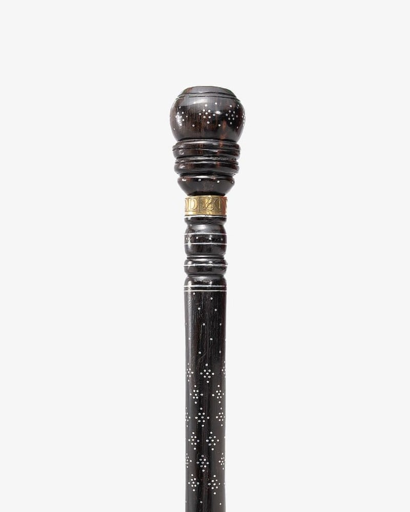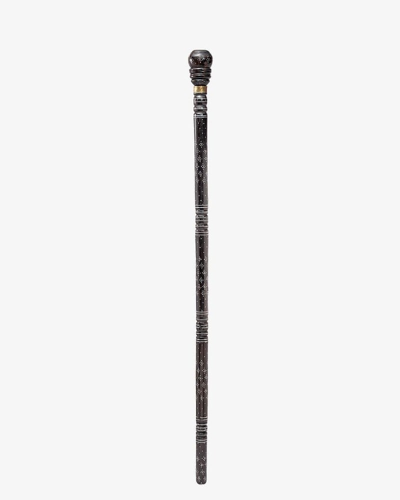 A luxurious dark brown crutch made of natural ebony wood, inlaid with metal, with a soft-touch round handle, handmade by the most skilled craftsmen specialized in manufacturing crutches from natural wood, and professionally polished, multi-use, can be disassembled and assembled, 89 cm long, wide thickness, suitable for social occasions for all tastes