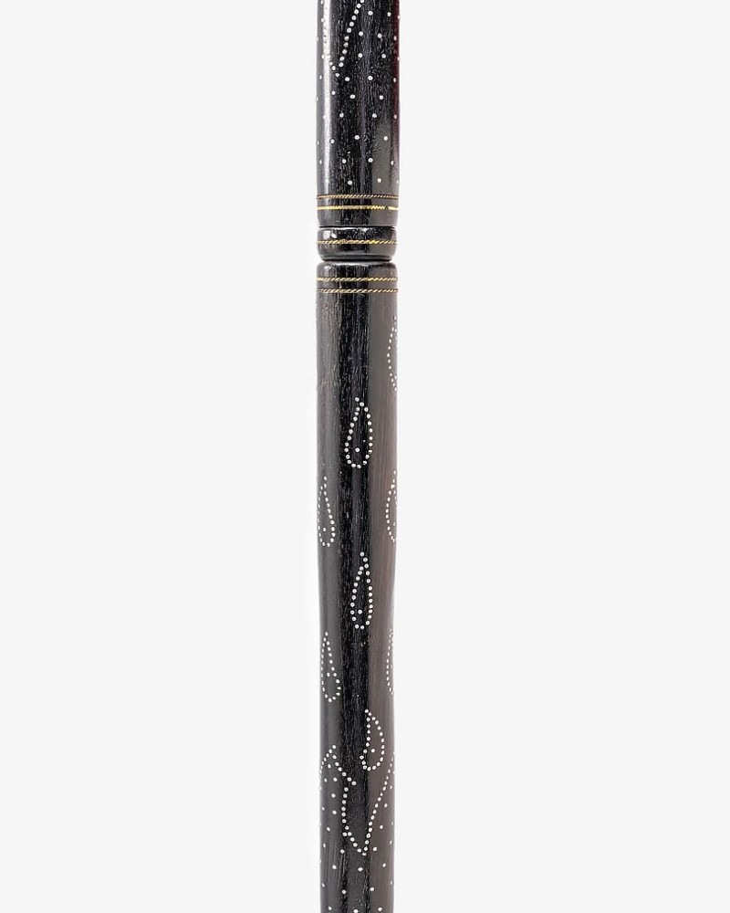 A luxurious dark brown crutch made of natural ebony wood, decorated with metal, with a soft-touch longitudinal handle, handmade by the most skilled craftsmen specialized in manufacturing crutches from natural wood, and professionally polished, multi-use, can be disassembled and assembled, 93 cm long, wide thickness, suitable for social occasions for all tastes