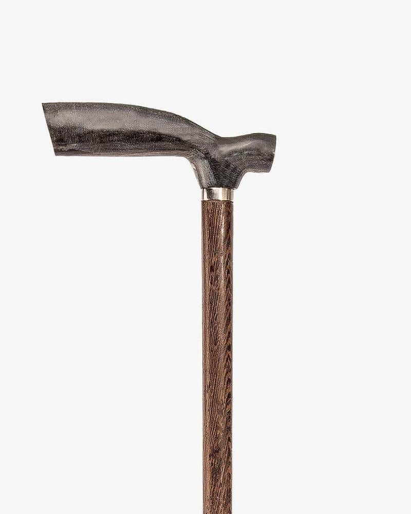 A luxurious crutch stick made of natural Venge wood (buffalo horn), decorated with professionally polished metal with a soft texture, with a longitudinal handle handcrafted by the most skilled craftsmen specialized in manufacturing crutches from natural wood. It has been professionally polished for multiple uses and is 94 cm long. It is suitable for social occasions for all tastes.