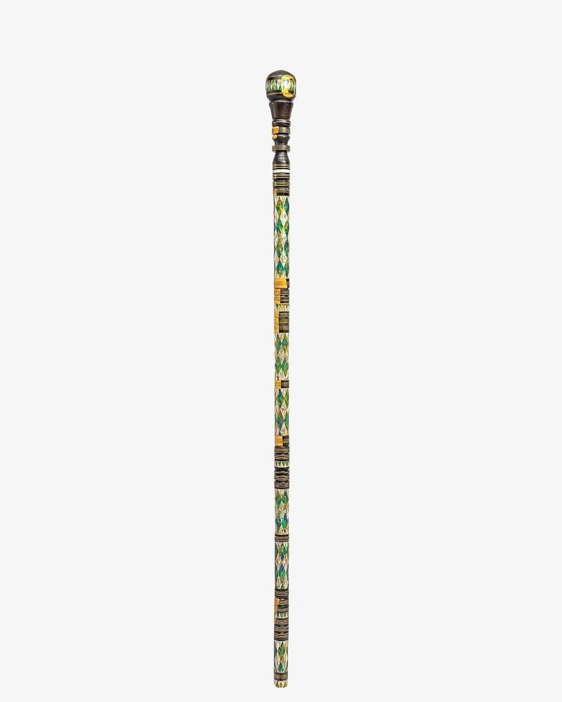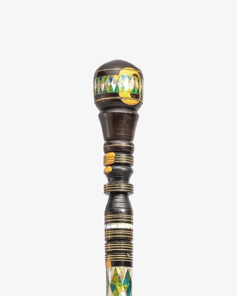 An elegant natural ebony wood crutch, professionally inlaid with soft-touch natural mother-of-pearl, with a round handle, handmade by the most skilled craftsmen specialized in manufacturing crutches from natural wood. It has been professionally polished, multi-use, and is 97 cm long. Suitable for social occasions for all tastes. (The box is not included with the crutch)