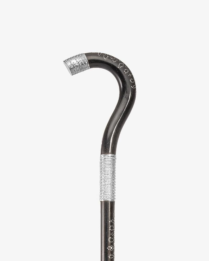 A luxurious Omani crutch, engraved with 925 sterling silver, professionally polished, soft to the touch, with a curved handle, handcrafted by the most skilled craftsmen specialized in manufacturing crutches from natural wood. It has been professionally polished for multiple uses, 98 cm long, suitable for social occasions for all tastes.