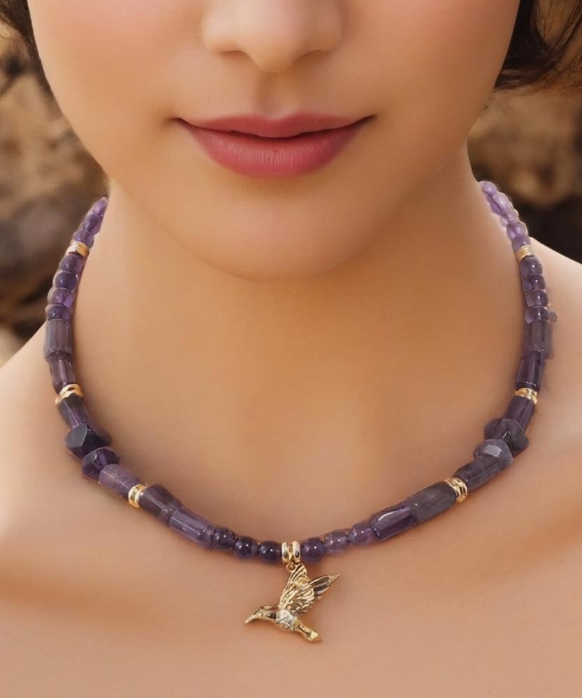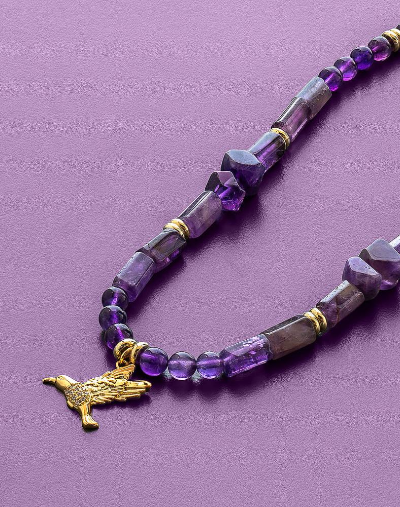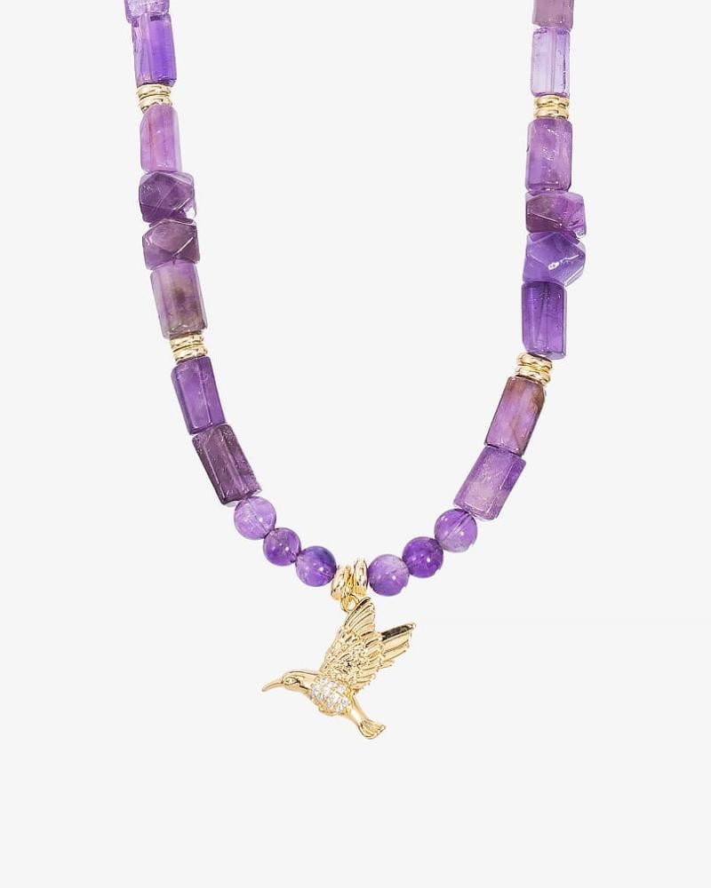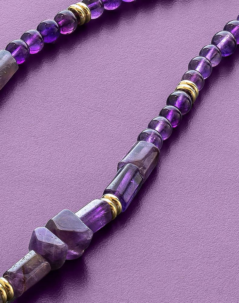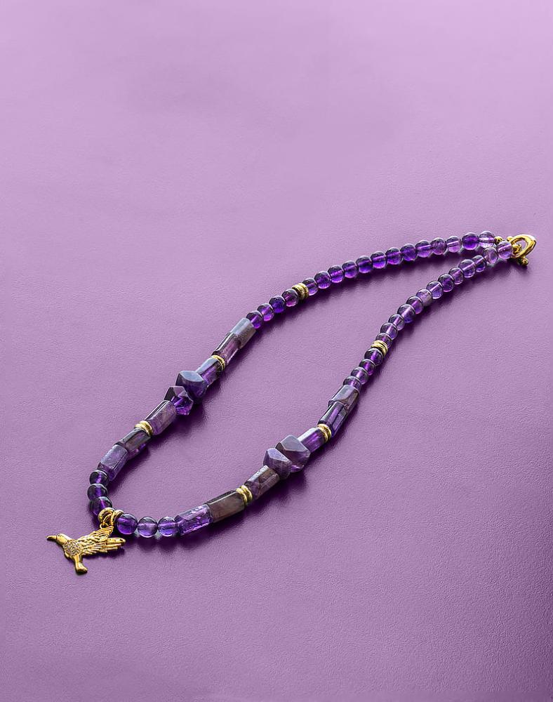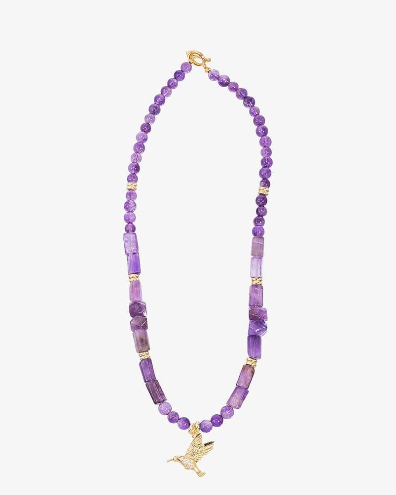 Choose elegance and luxury with a women's necklace from Emerald. We are sure that this necklace will be your new favorite piece. This chain is surrounded by a natural purple amethyst stone with veins in different shades that give the chain beauty and elegance. It is distinguished by a hook-shaped closure that keeps it securely fixed around your neck. Suitable for all tastes and ages.
