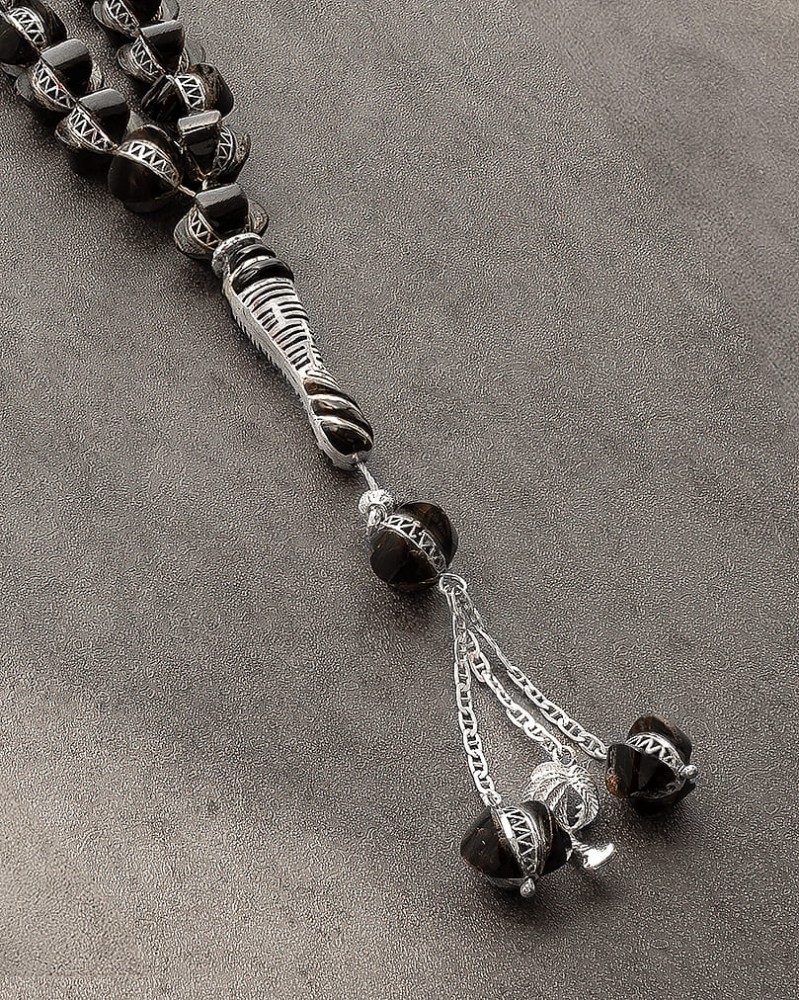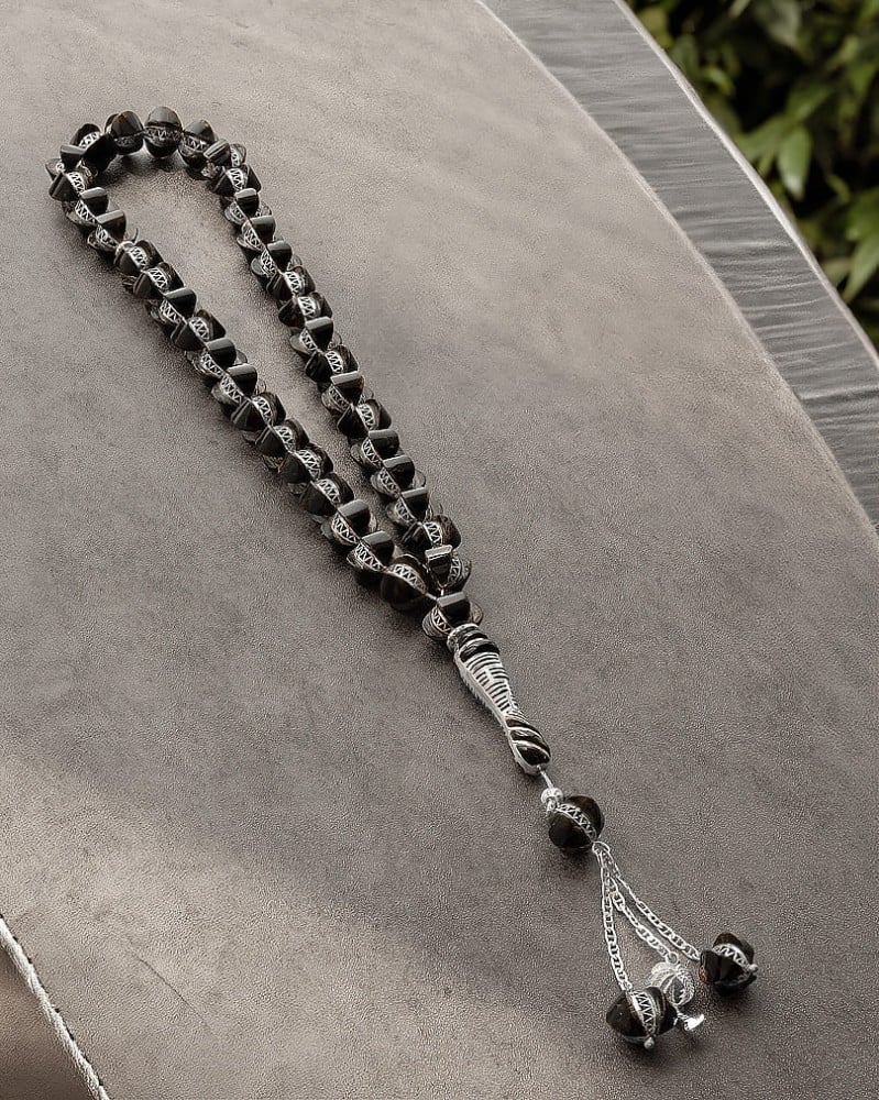 A rare and unique rosary from Yusr Tabie, made with great precision and care. It features a wonderful conical design and a smooth texture that reflects its high quality. This rosary is distinguished by its extreme elegance and ornate details that give it a sophisticated look. Its beautiful and elegant design makes it ideal for daily use and formal occasions. Get this wonderful rosary now to add a touch of elegance and distinction to your look.