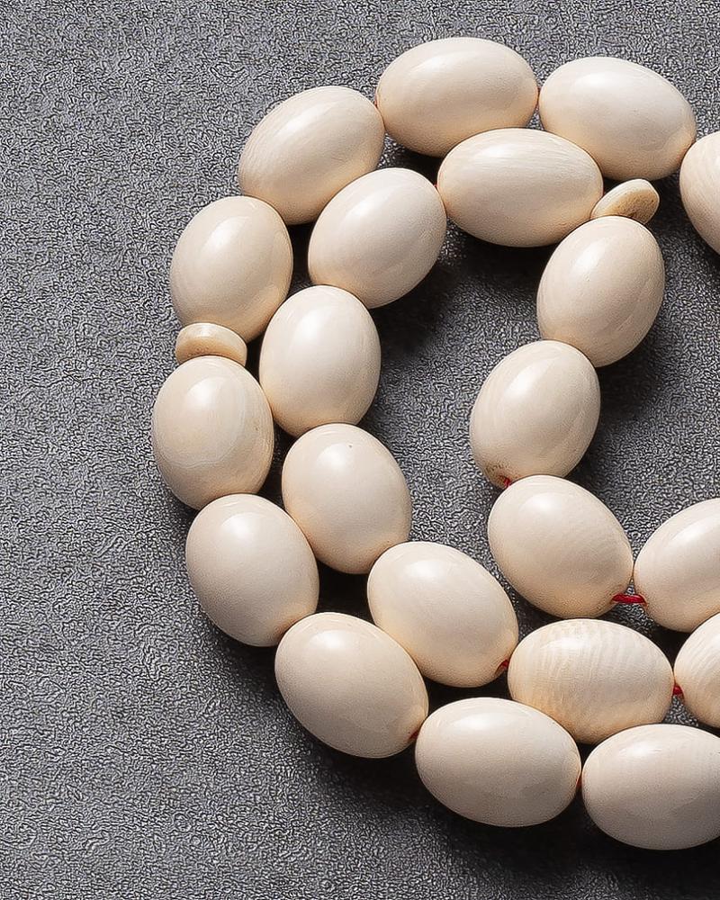 A rare rosary made of elegant white ivory (elephant tusk), handcrafted with high precision and luxurious materials, characterized by its elegant shape and soft texture. Its homogeneous oval design highlights the beauty of its owner and adds a touch of elegance and luxury. It is characterized by its high quality and formal design that makes it ideal for all occasions. Get this wonderful rosary and add a touch of elegance and distinction to your look.